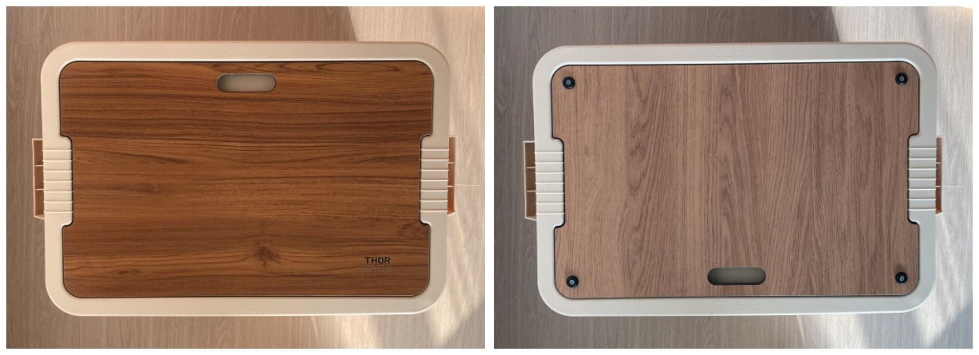 2. 손잡이가 튀어나와 있어요. (손잡이가 뚜껑 보다 튀어나와 트렁크에 넣을 때 공간 활용에 있어서 마이너스 점수를 주고싶어요. 하지만 들고 이동할 때엔 안정적으로 잡을 수 있어요. 단점과 장점이 공존하네요.)