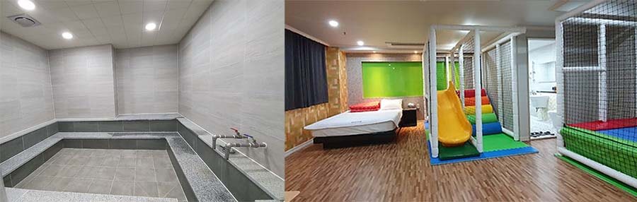 키즈룸 가족탕을 이용하시면 객실 안에 아이들이 놀 수 있는 요소들이 많이 있어 인기가 좋습니다.