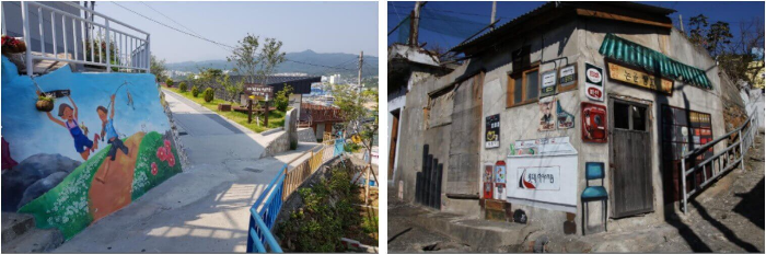 논골담길은 감성적인 그림들과 포토 스폿이 많아 인기가 많습니다. 지역 어르신들과 예술가들이 함께 참여하여 지금의 마을을 만들 수 있게 되었습니다.