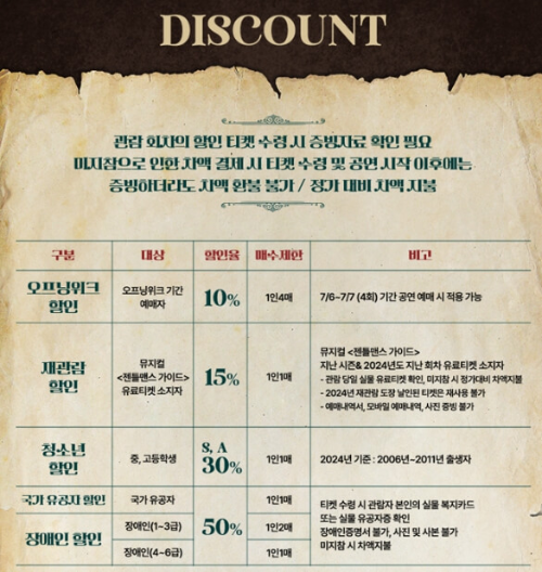 - 오프닝 위크 7/6~7/7 (4회) 공연 10% 할인