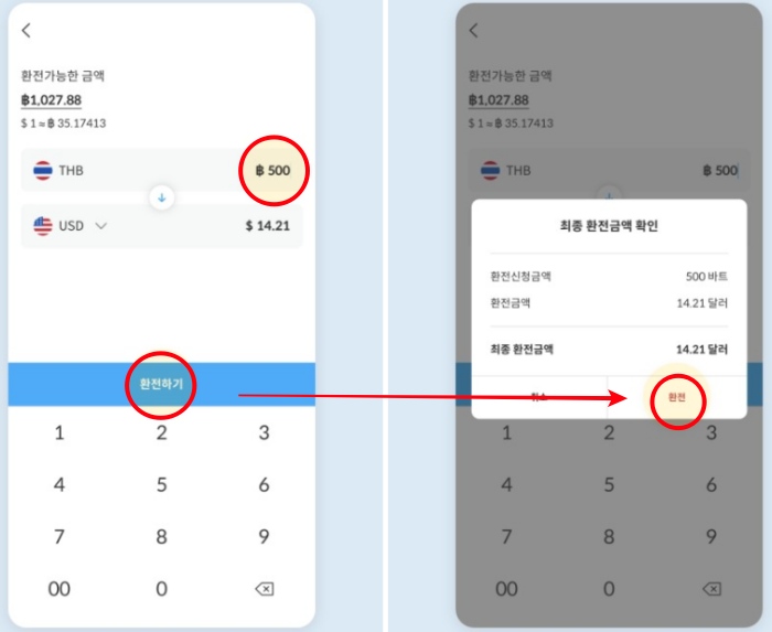 4. '환전하기' 버튼을 눌러 환전을 완료합니다.
