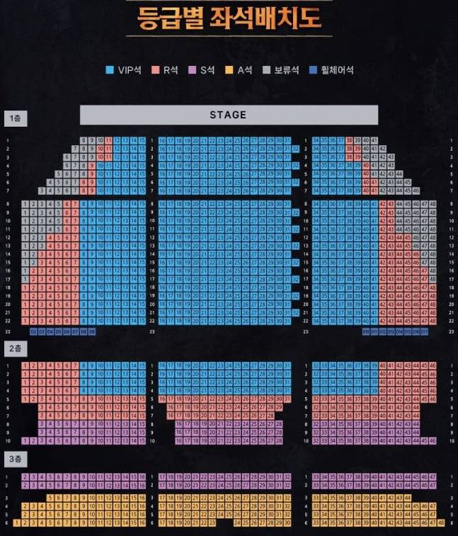 VIP석 17만원, R석 14만 원, S석 11만 원, A석 9만 원입니다.