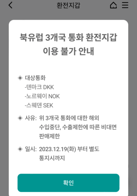 현재 2024년 2월에는 북유럽 덴마크, 노르웨이, 스웨덴 3국가의 통화는 이용 불가로 안내하네요. 참고하세요.
