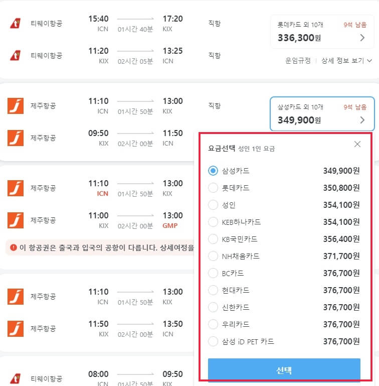 3. 단점으로는 우리나라 저가 항공사 티켓은 검색량이 적습니다.