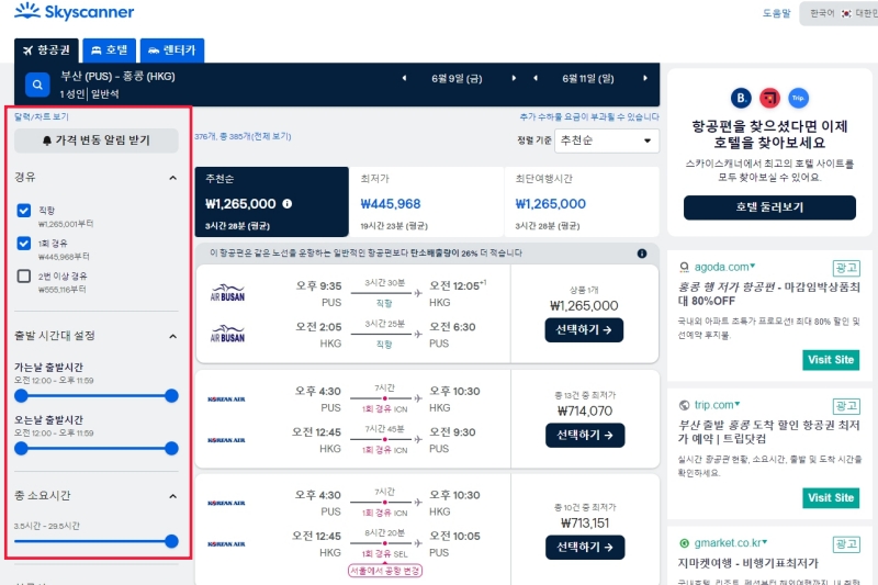 2. 스카이스캐너는 전 세계의 많은 항공권을 알아볼 수 있는 것이 큰 장점입니다.