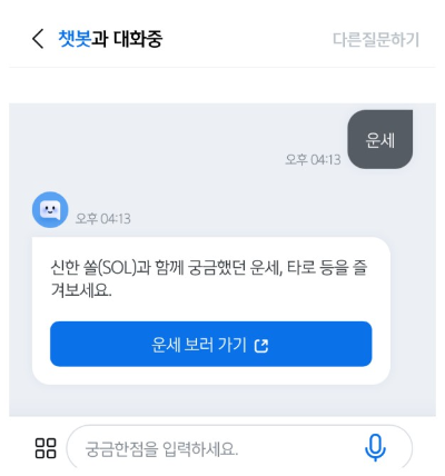 대화창에 '운세'를 적어주면 '운세 보러 가기'가 바로 나옵니다.